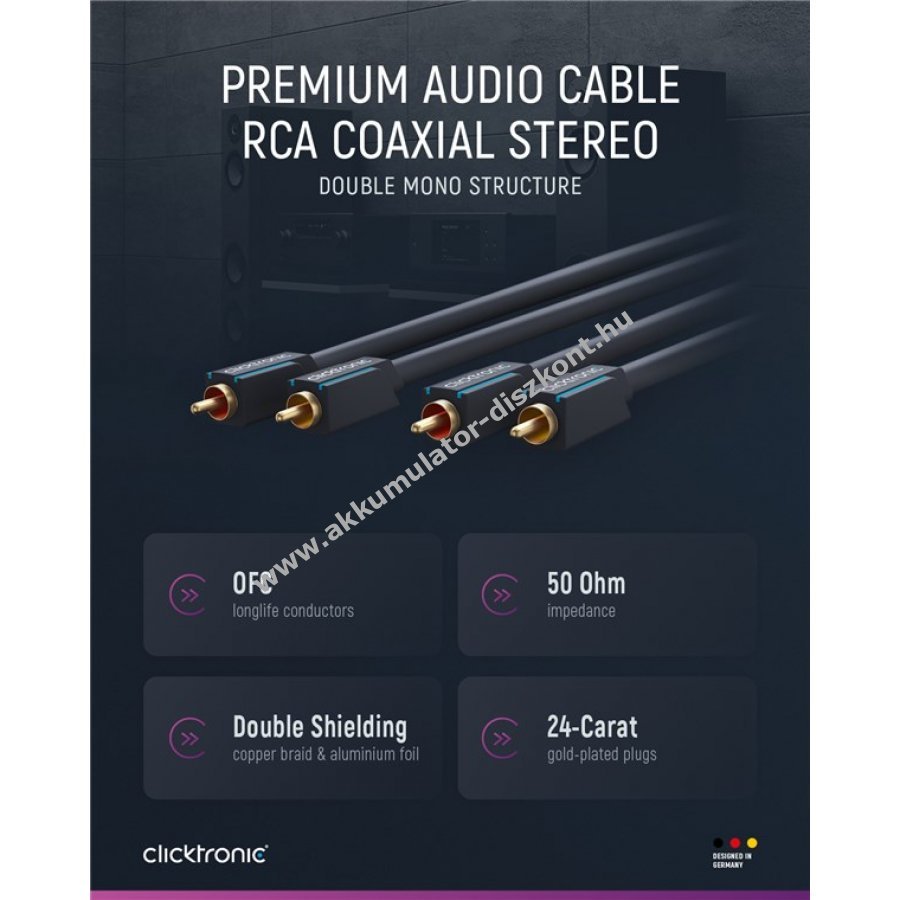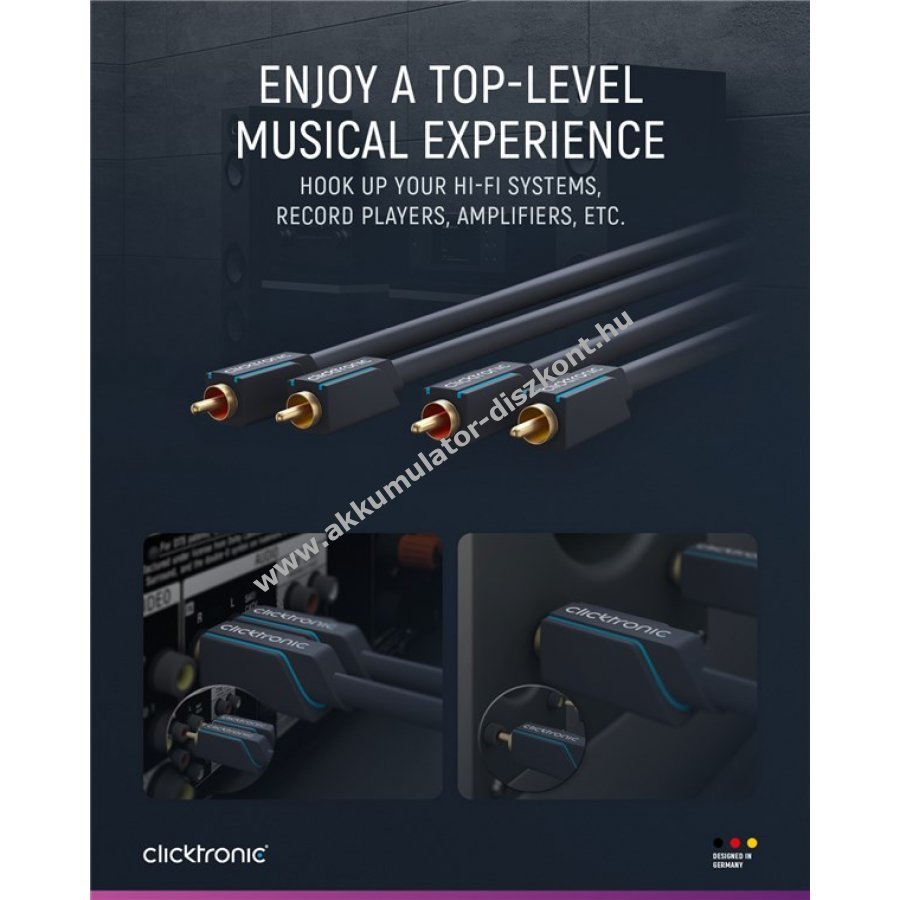 Clicktronic kiemelten figyel a tartósságra és stabilitásra 10 év garanciát vállalva a Cinch kábelekre