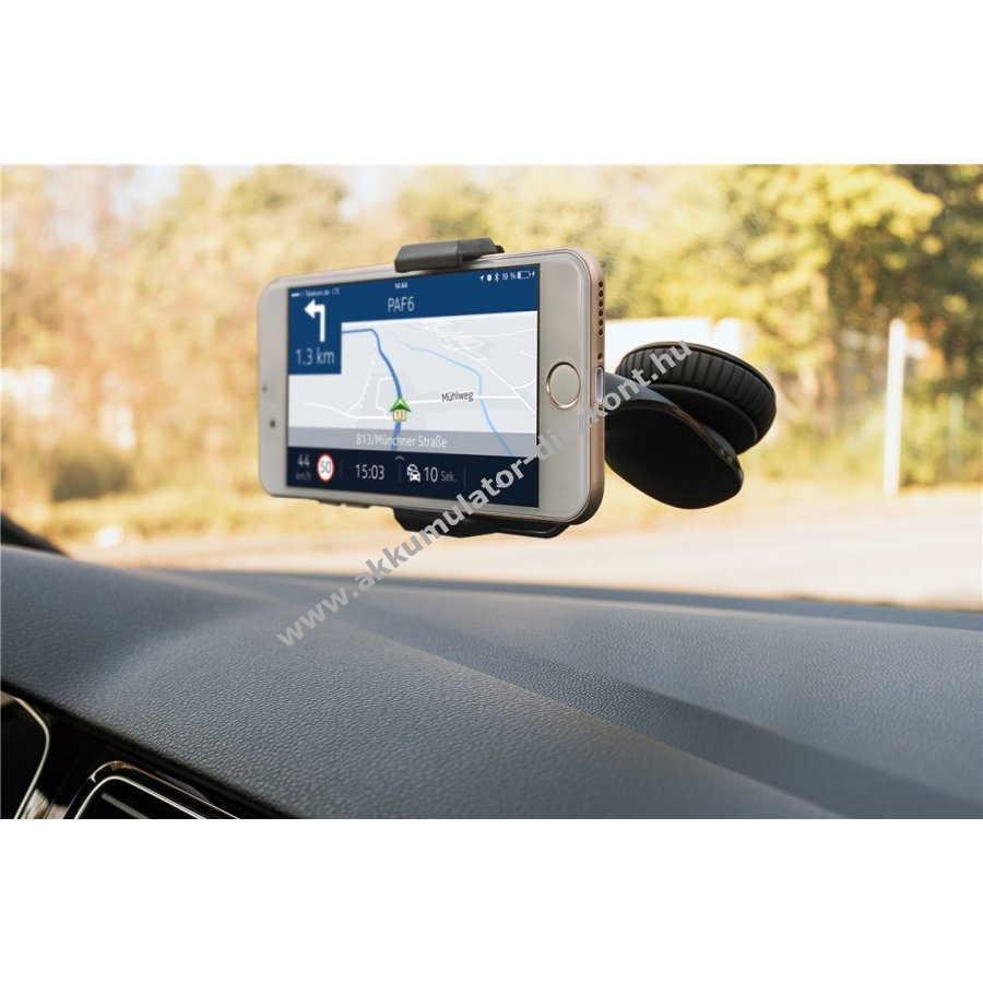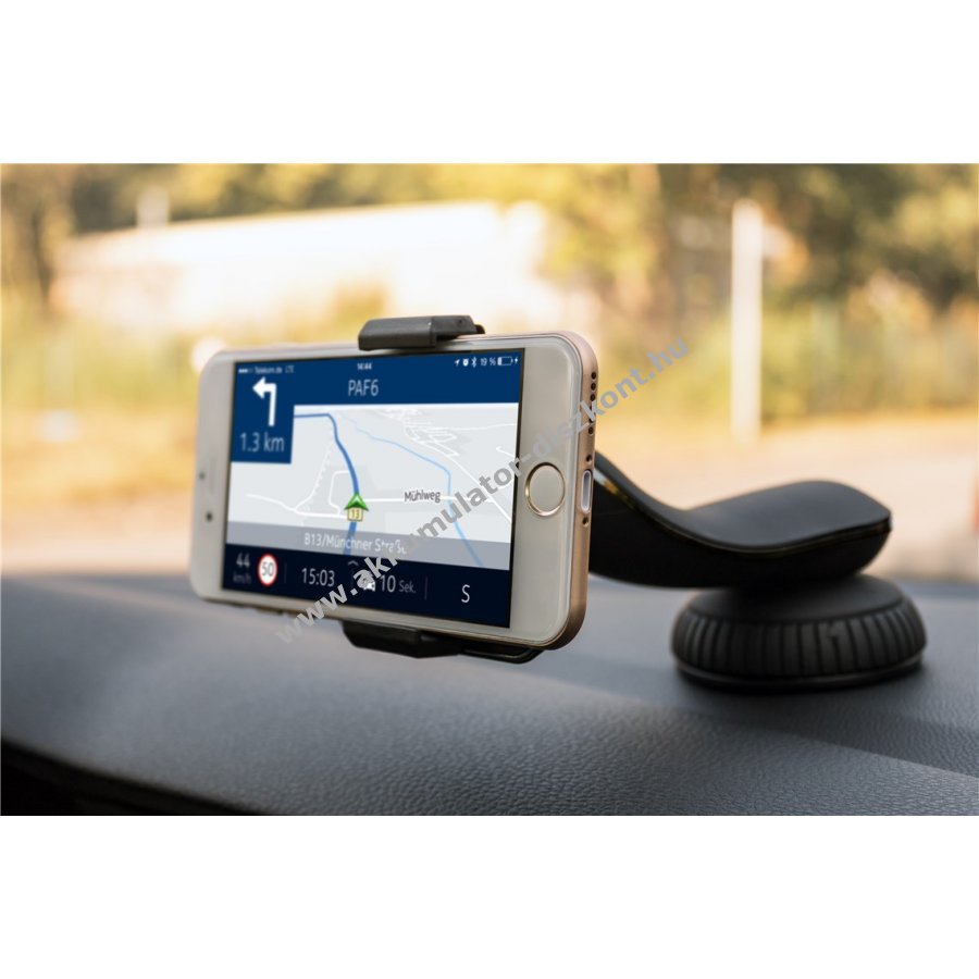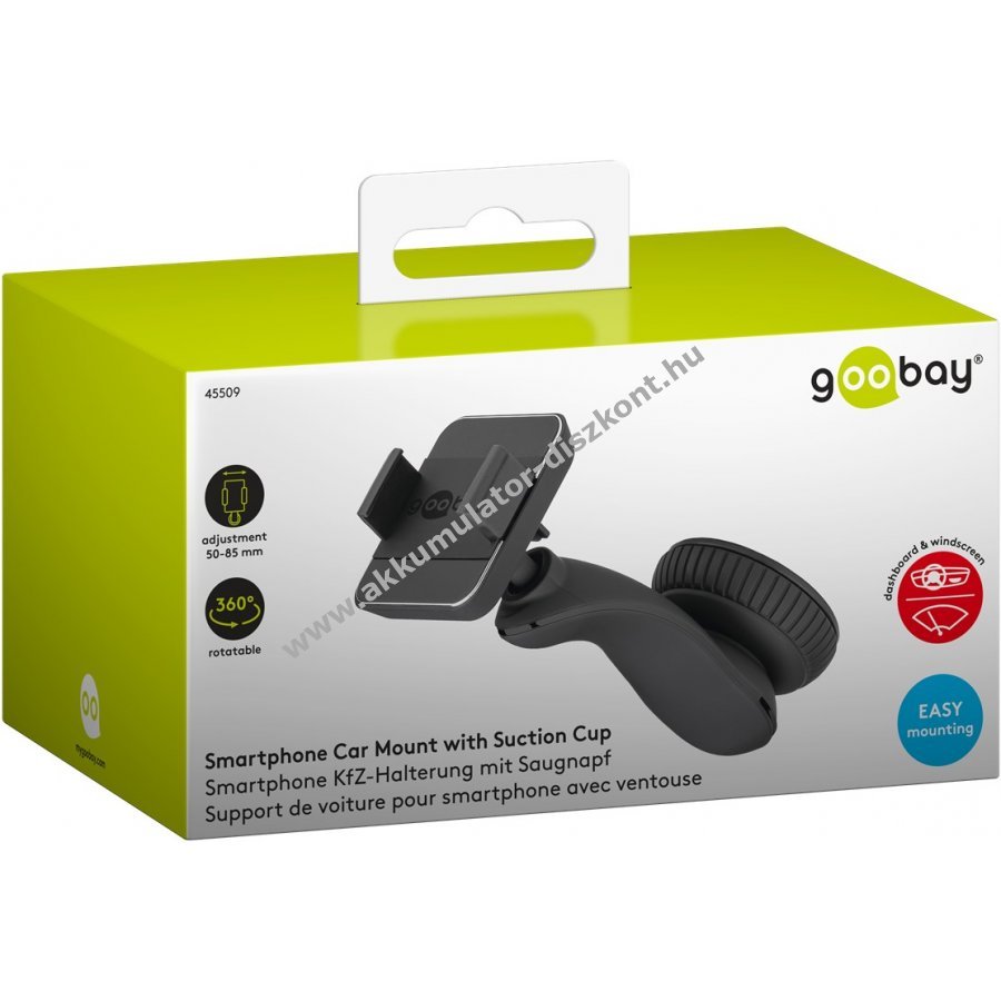 Goobay tapadókorongos okostelefon autós tartó fekete Függő doboz A könnyű és biztonságos rögzítéshez a járműben egyéni készülékméret beállítása 50 mm - 85 mm között Forgatható mechanizmussal ellátott tapadókorongos alap garantálja a biztos tartást a szélvédőn. A gömbcsuklónak köszönhetően egyedileg állítható és rögzíthető 360°-ban a tökéletes látószög érdekében. A puha párnázott oldallap védi az okostelefont a karcolásoktól. Lehetővé teszi a csatlakozók és kezelőszervek korlátlan elérését. Tartalmazza az öntapadó 80 mm-es adapterlemezt a tapadókorongos alaptartóhoz a szélvédőn kívüli, például a műszerfalra történő rögzítéshez. Az adapterlemez maradványok nélkül eltávolítható.
