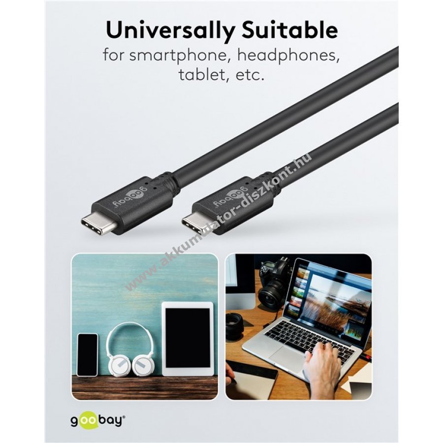 Goobay USB C 3.1 töltő és adatkábel fekete (3m)