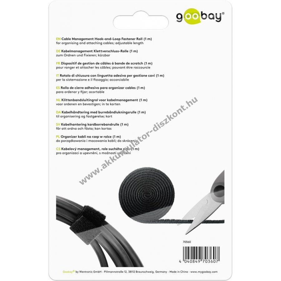 Egyszerű kábelrendezés irodába és otthonra. Kábelek, csövek és vezetékek könnyű összefogására és rögzítésére. Megakadályozza a kábelek elcsúszását és összegubancolódását. A tépőzáras szalag igény szerint méretre vágható. Könnyen nyitható és többször használható. Minőségi mikroszemek és sűrű műszálak biztosítják a megbízható tapadást.