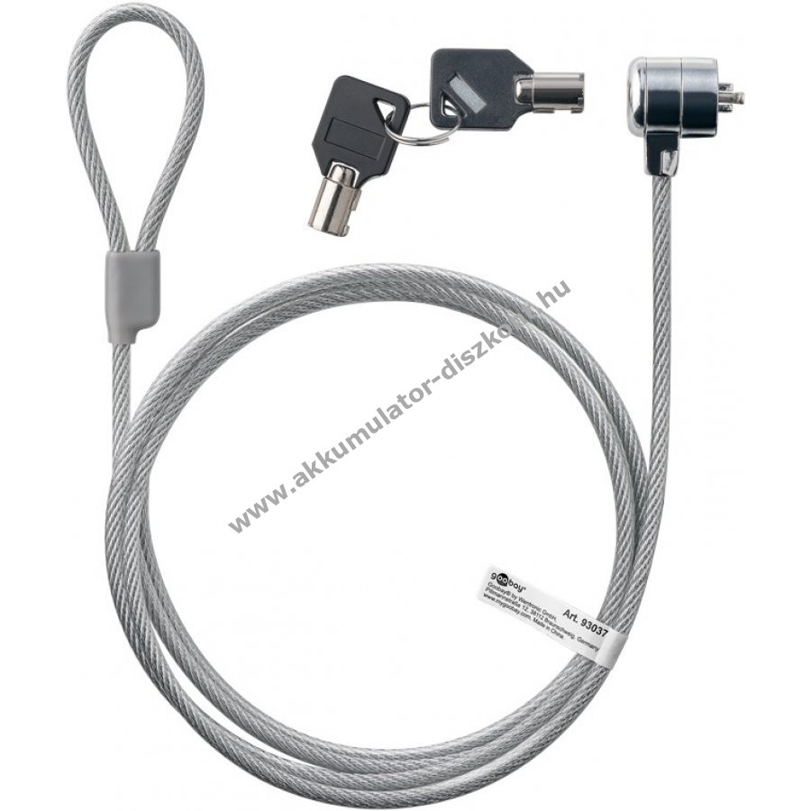 Goobay biztonsági zár notebookhoz és PC-hez 1,5m műanyag bevonatú acélkábellel 2 kulccsal