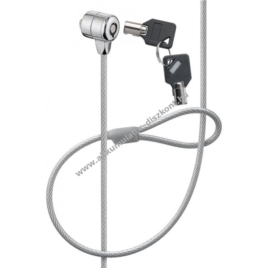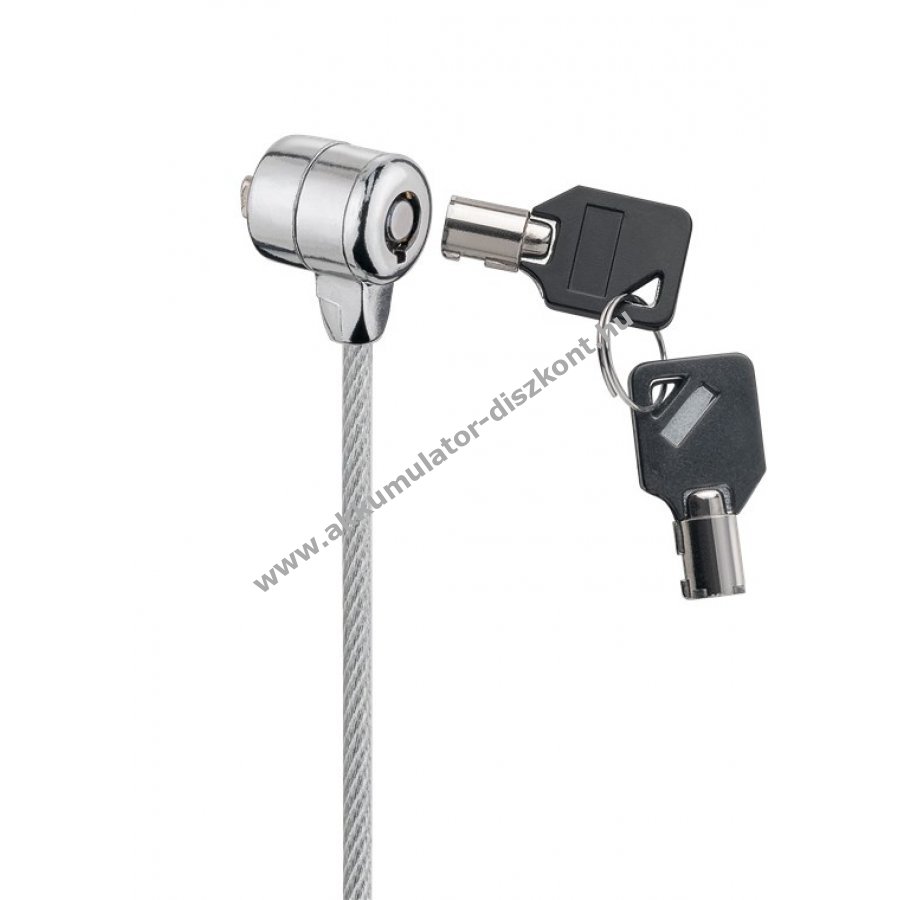 Hatékony védelem laptopok és PC-k lopás ellen nyilvános helyeken. 1,5 m hosszú műanyag bevonatú acélkábel könnyen rögzíthető asztallábhoz. T alakú zárócsap kompatibilis szabványos biztonsági nyílással rendelkező eszközökkel. Gyors zárás kulccsal amely csak a tulajdonos által nyitható. Robusztus és megbízható kivitel.