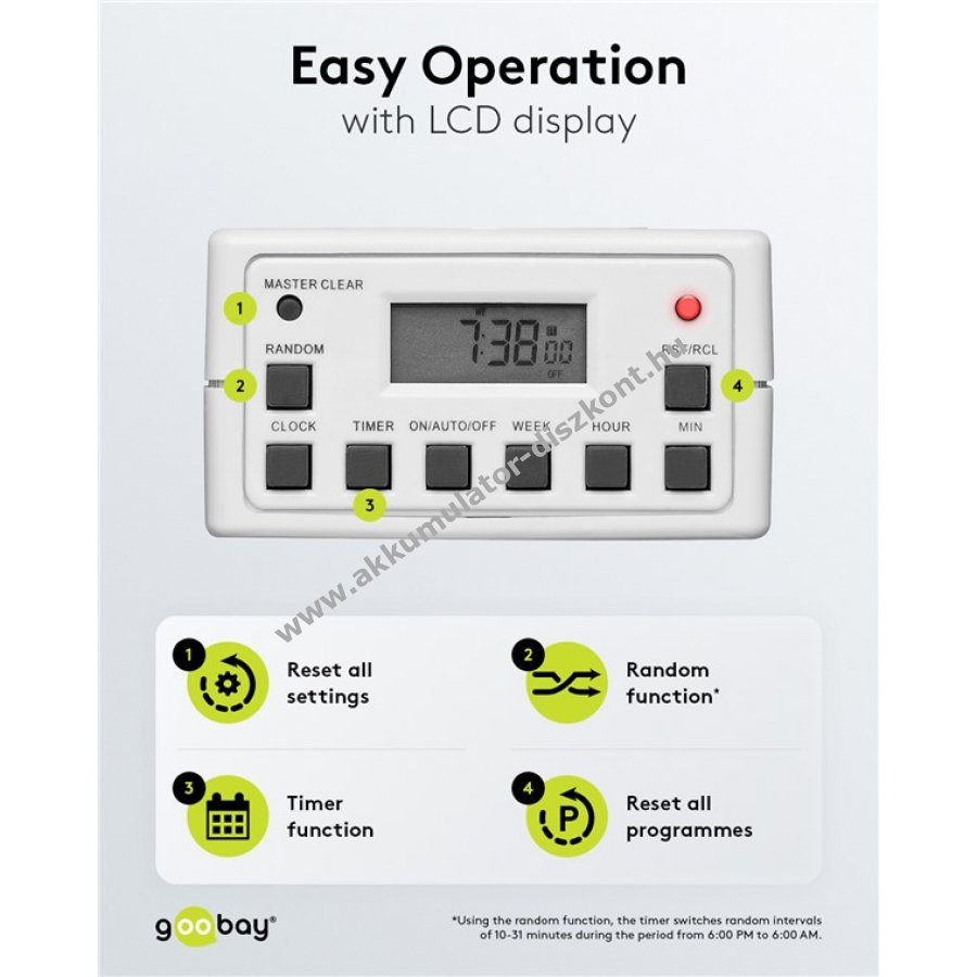 - Használható napi és heti időkapcsolóként egyaránt.