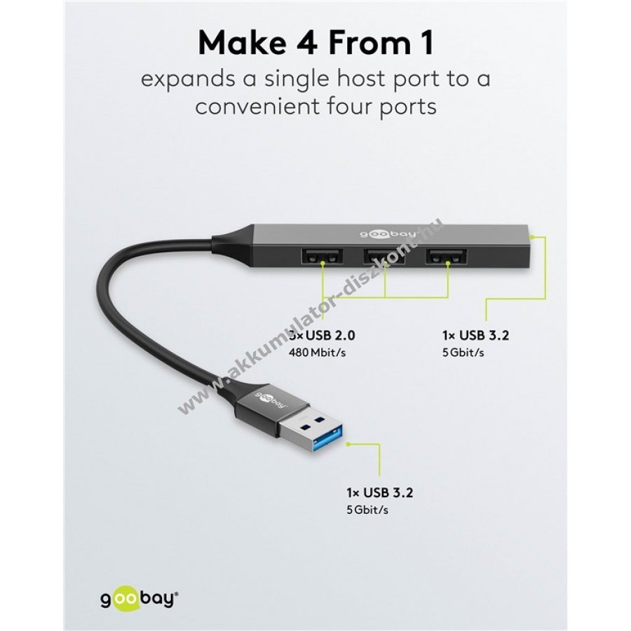 Négy USB-A csatlakozó egyetlen portból maximális csatlakoztathatósághoz táblagépekhez okostelefonokhoz és laptopokhoz.