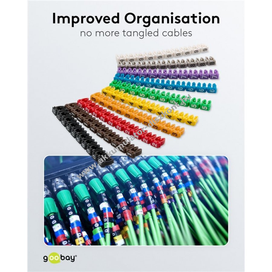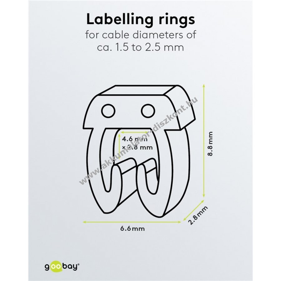 Goobay PVC kábeljelölő gyűrűk ideális megoldás vezetékek és kábelek megjelölésére ipari, építő és kézműves környezetben, megkönnyítik az azonosítást és növelik a biztonságot karbantartás, telepítés és javítás során.