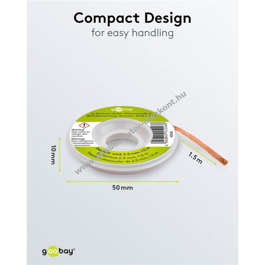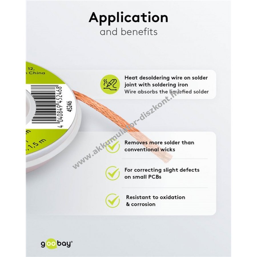 Nagyon jó kapilláris hatásának köszönhetően hatékonyan és tisztán távolítja el az olvadt forrasztót.