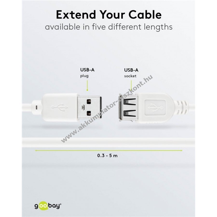 USB 2.0 szabványú kábel USB-A csatlakozókkal eszközök csatlakoztatásához. Gyors adatátvitel akár 480 Mbit/s sebességgel. Alkalmas szinkronizálásra és töltésre. Kompatibilis USB-A csatlakozókkal. Hosszabbító kábel 1,8 m hosszban.