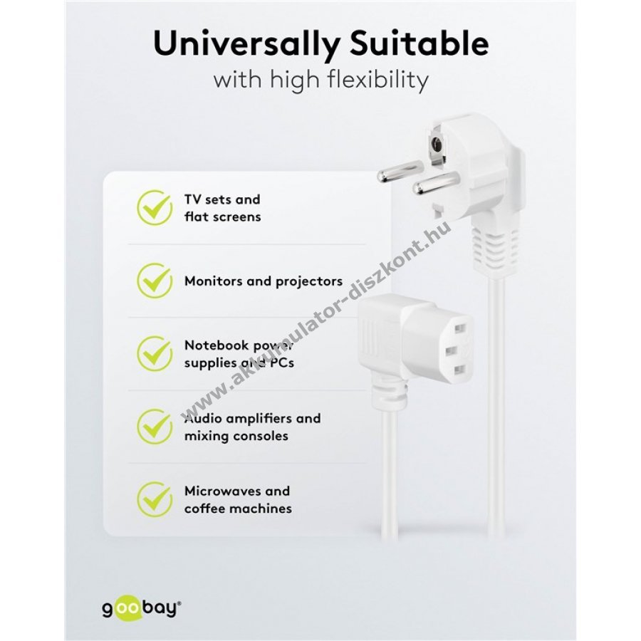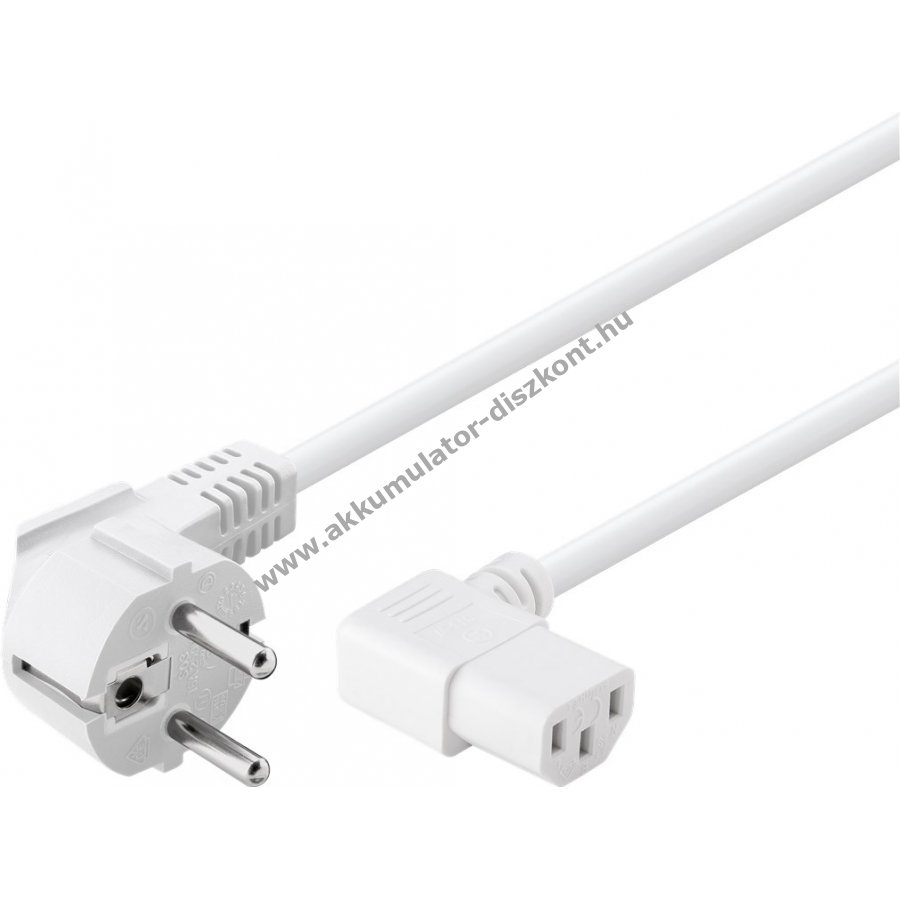 Univerzális hálózati kábel 90 fokos nikkelezettttt érintkezős C13 csatlakozóval és 90 fokos fém érintkezős Schutzkontakt dugóval 2 m hosszban 3x0,75 mm2 keresztmetszettel