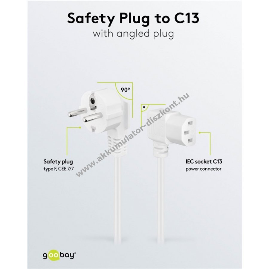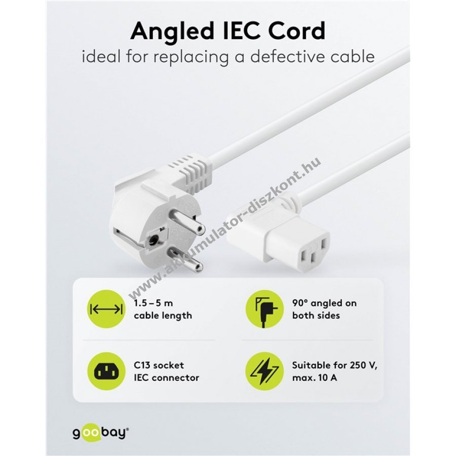 Goobay 3m fehér 90 fokos CEE 7/7 csatlakozós C13 hálózati kábel