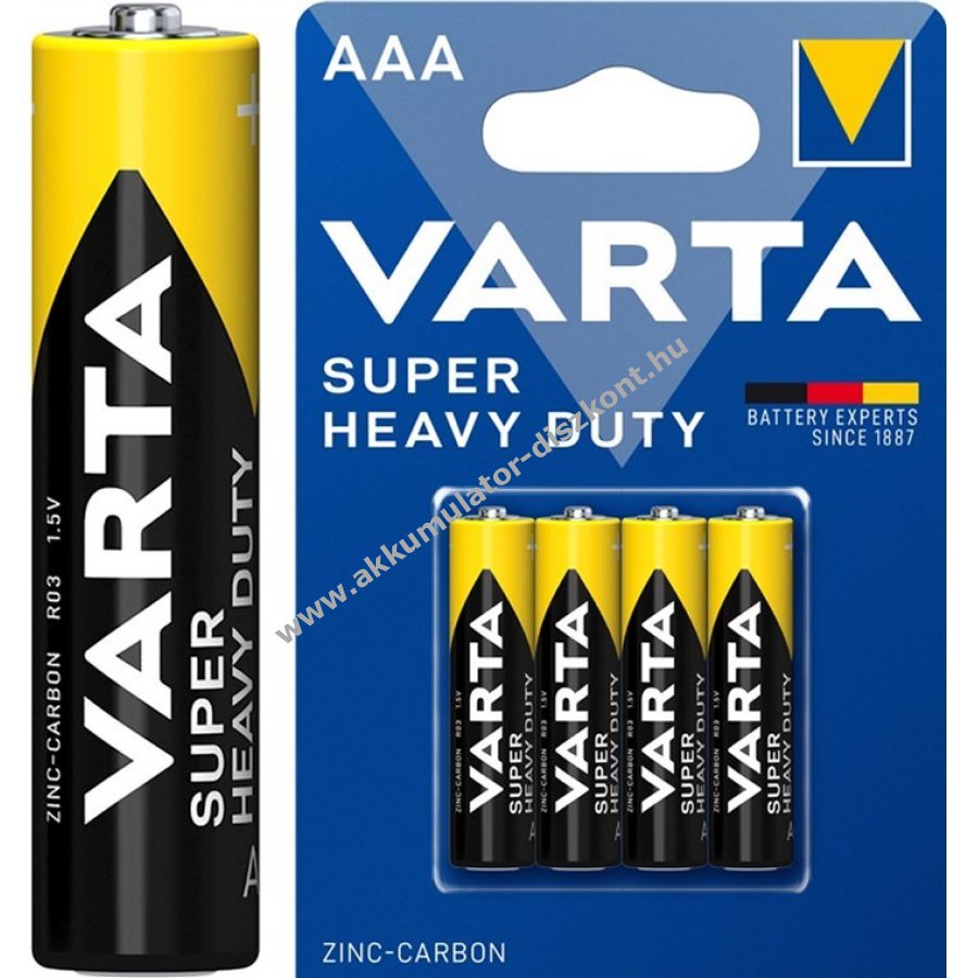 Varta R03/AAA (Micro) 2003 cink-szén elem 1,5V 4db/csomag. Megbízható áramellátást biztosít kis fogyasztású elektronikai készülékeknek.