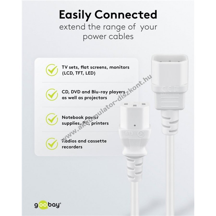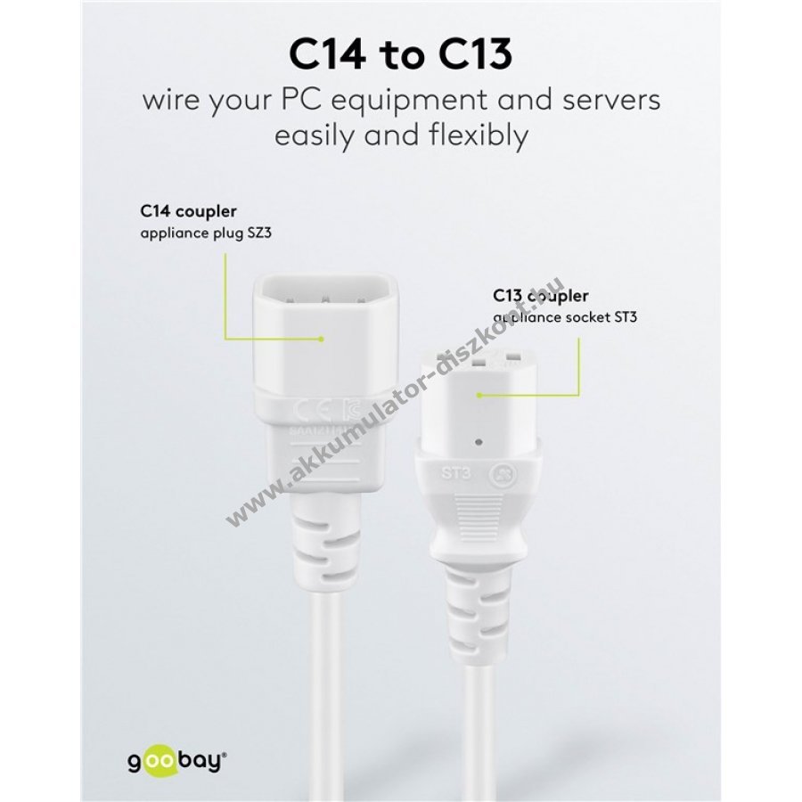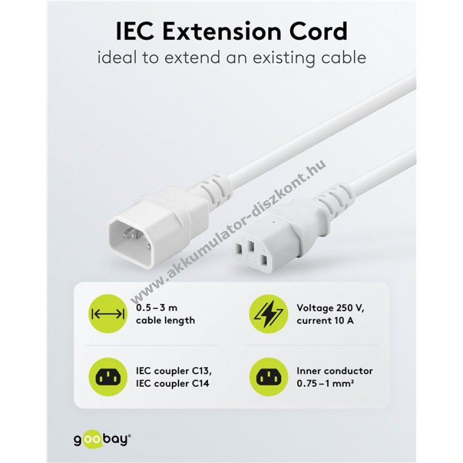 Goobay hálózati hosszabbító kábel 0,5m C14 dugó C13 aljzat fehér