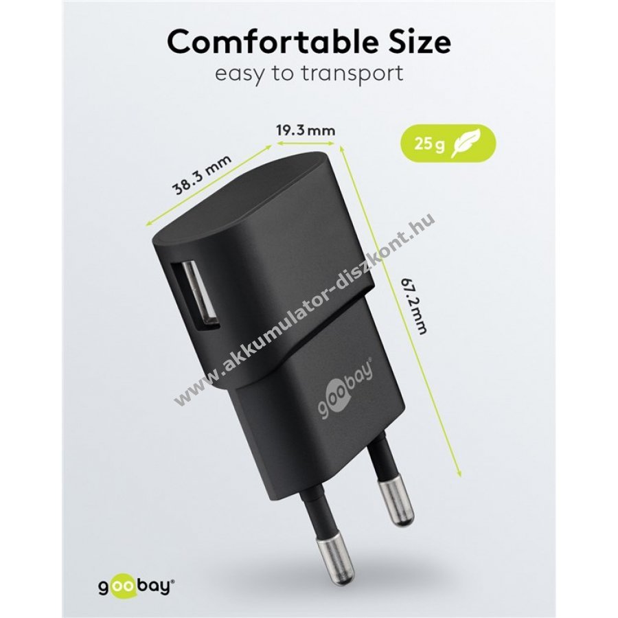 Goobay USB hálózati adapter, töltő, töltőfej fekete 1A