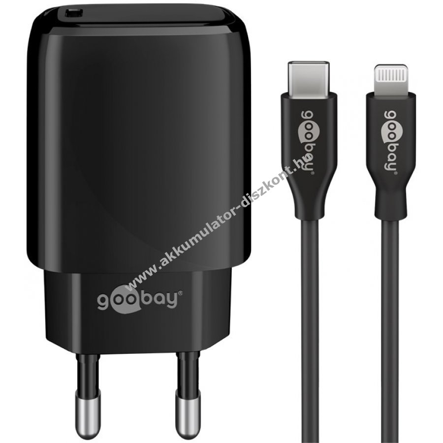 Goobay USB-C 20W PD töltő Lightning kábellel iPhone és iPad készülékekhez - A készlet erejéig!