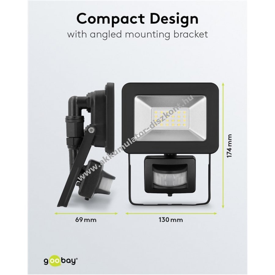 Nagyon világos és praktikus LED reflektor kompakt kialakítással házbejáratokhoz garázsokhoz kocsibeállókhoz homlokzatokhoz és bejárati utakhoz Ideális kertvilágításhoz