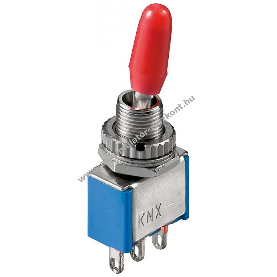 Mini kapcsoló 3 érintkezővel fém kar piros műanyag sapkával. A kapcsoló két állású EIN - EIN működésű. Maximális terhelhetőség 6 A 125 V vagy 3 A 250 V. Ideális barkácsoláshoz és modellépítéshez.