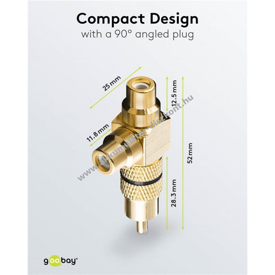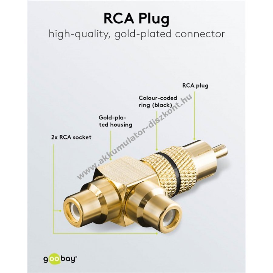 A Cinch elosztó egy bemeneti Cinch aljzatról két kimeneti aljzatra osztja a hangjelet.