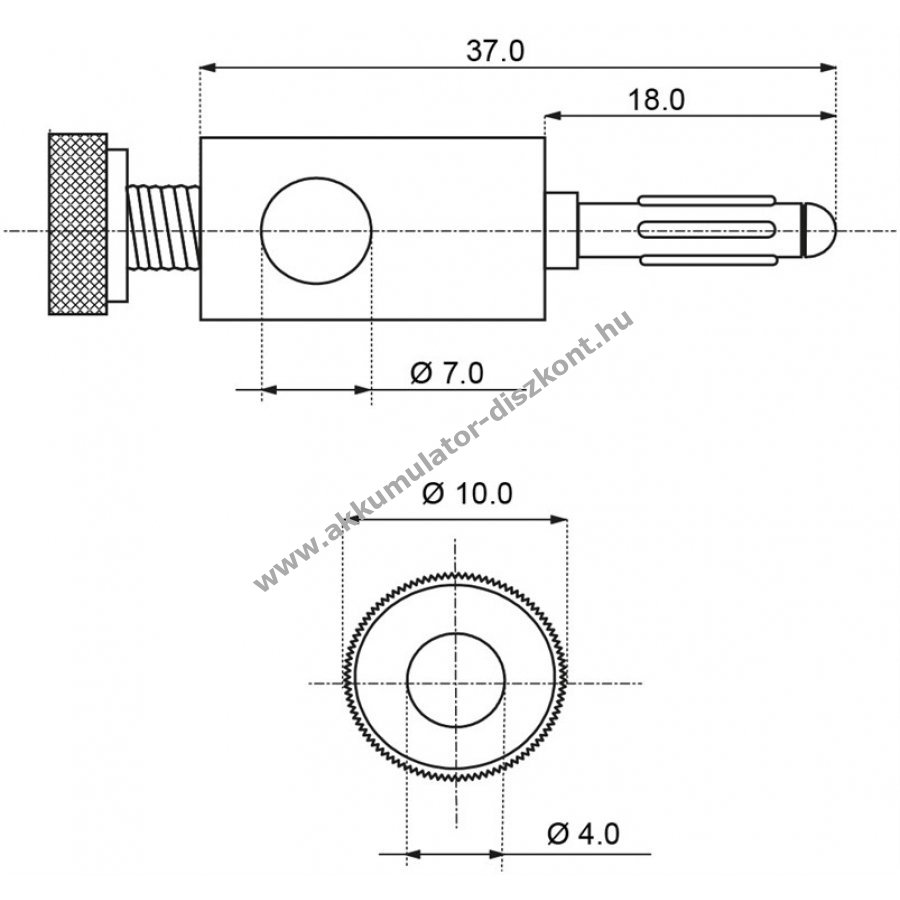 Egyenes csatlakozás a dugó talpán keresztül vagy oldalsó rögzítés a középső furaton át