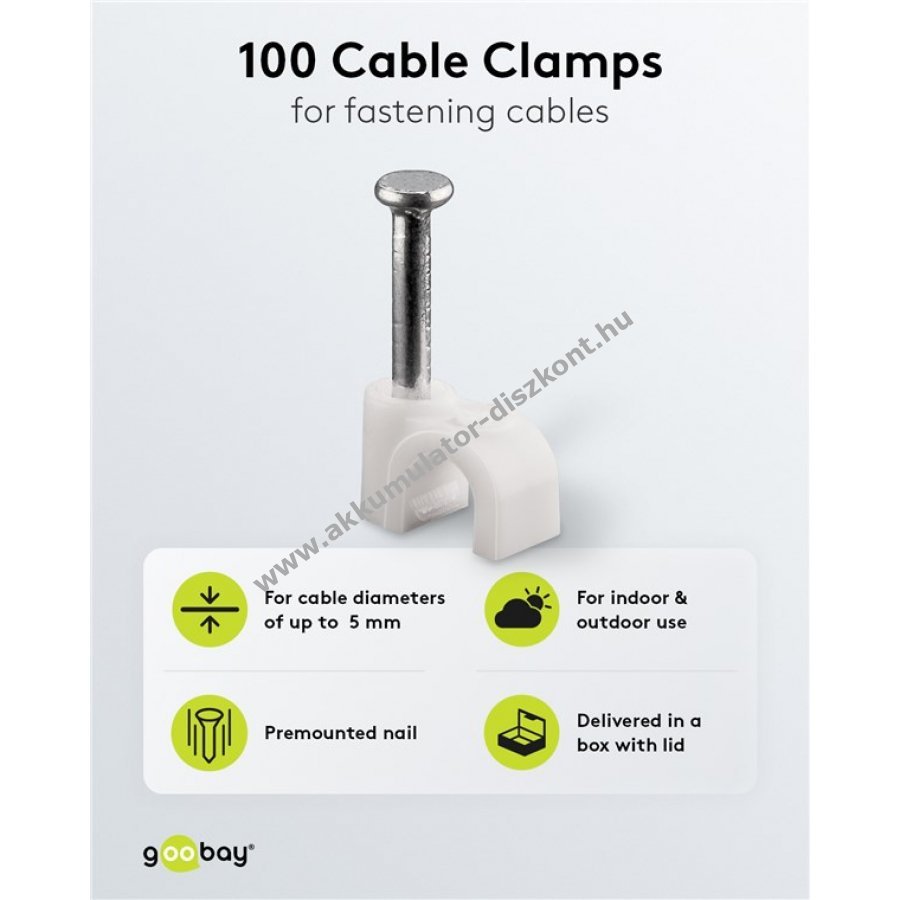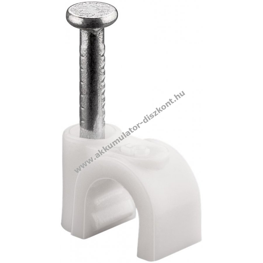 Kábelrendező bilincs 5 mm átmérőjű kábelekhez falra ajtókeretre és sarkokba való rögzítéshez. Stabilizált PE műanyagból és cinkezett acél szeggel készült. Belső és külső használatra egyaránt alkalmas kiváló szigeteléssel korrózió- és öregedésállósággal.