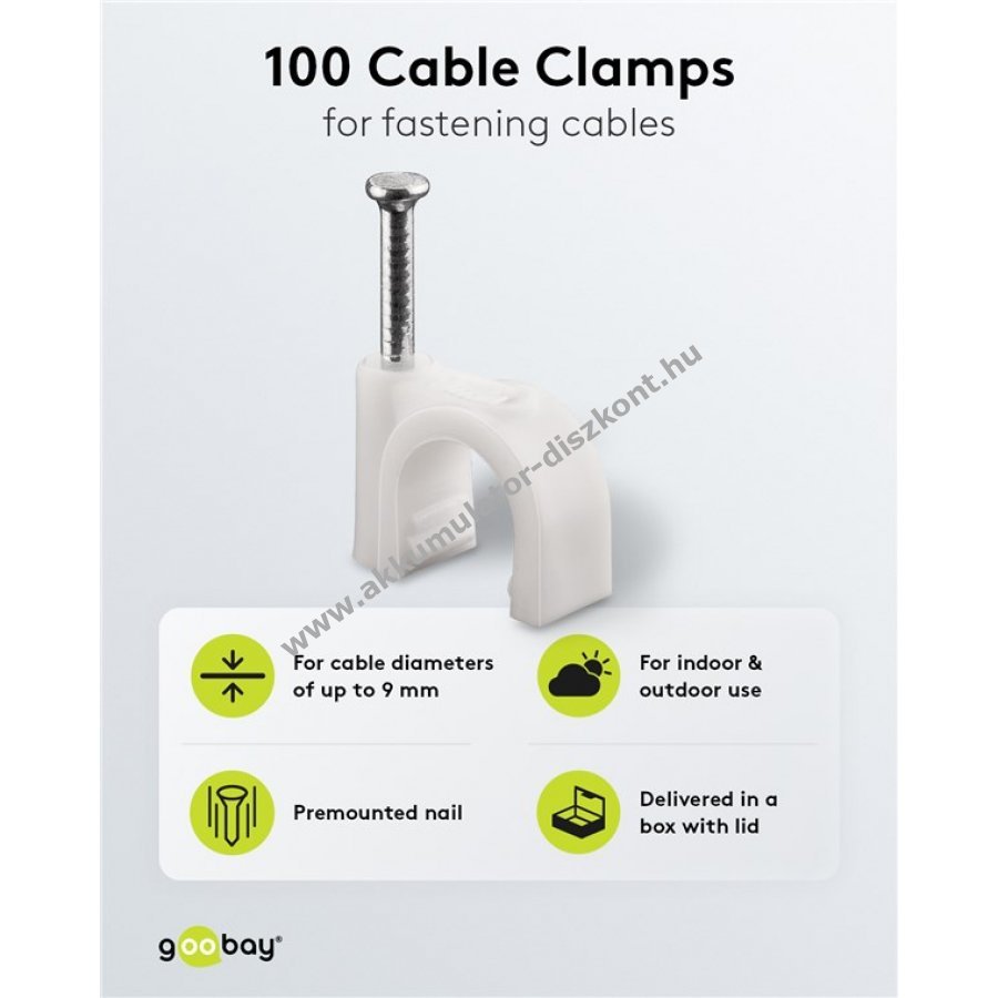 Goobay kábelbilincs 9mm fehér 100db/csomag