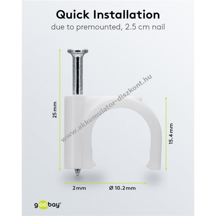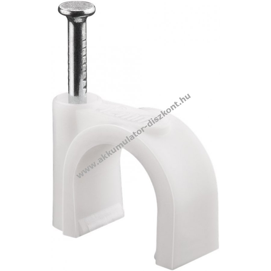 Kábelrendező bilincs 12 mm átmérőjű kábelekhez falra ajtókeretre és sarkokhoz. Magas minőségű stabilizált PE műanyag és cinkezett acél szeg. Beltéri és kültéri használatra egyaránt alkalmas jó szigeteléssel korrózió- és öregedésállósággal.