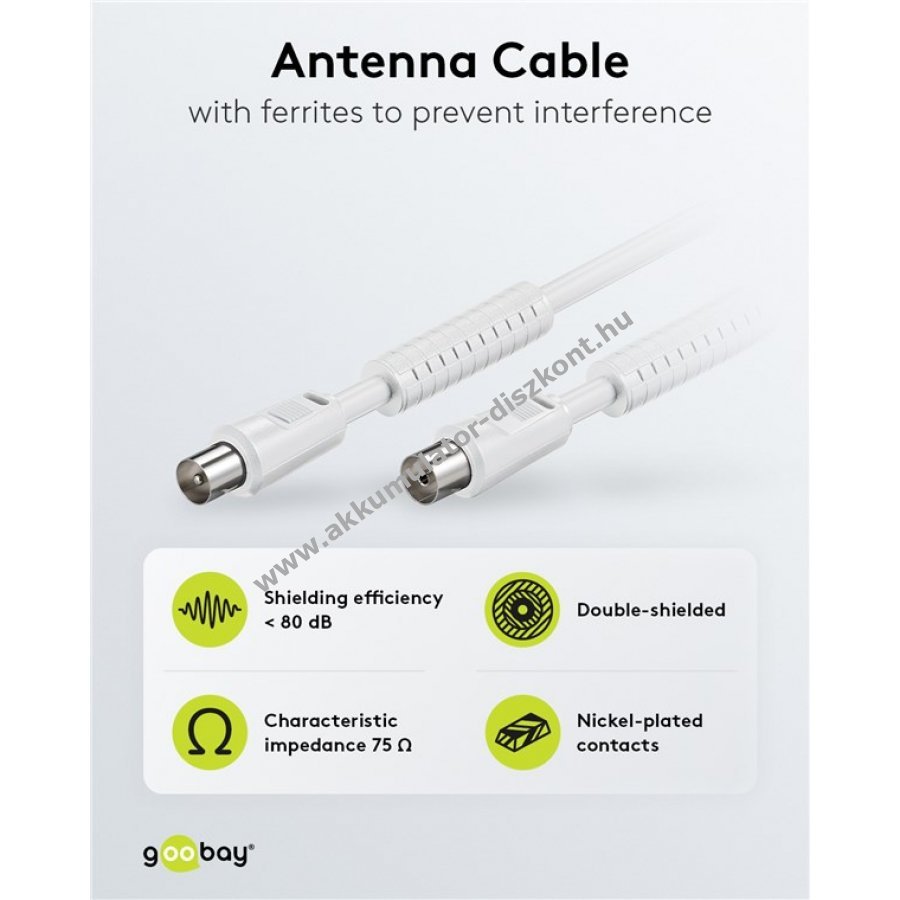 Dupla árnyékolású koaxiális antennakábel ferritmaggal a zavartalan jelátvitelhez.