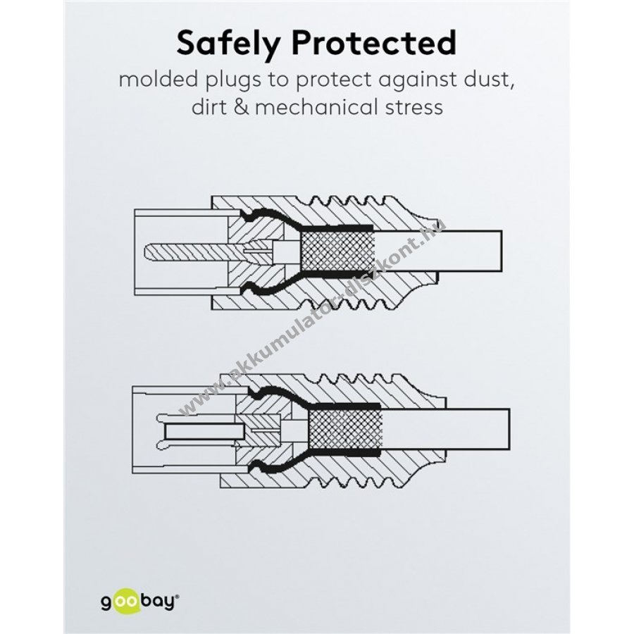 - Mindkét végén öntött csatlakozó a por, szennyeződés és mechanikai terhelés elleni védelemért
