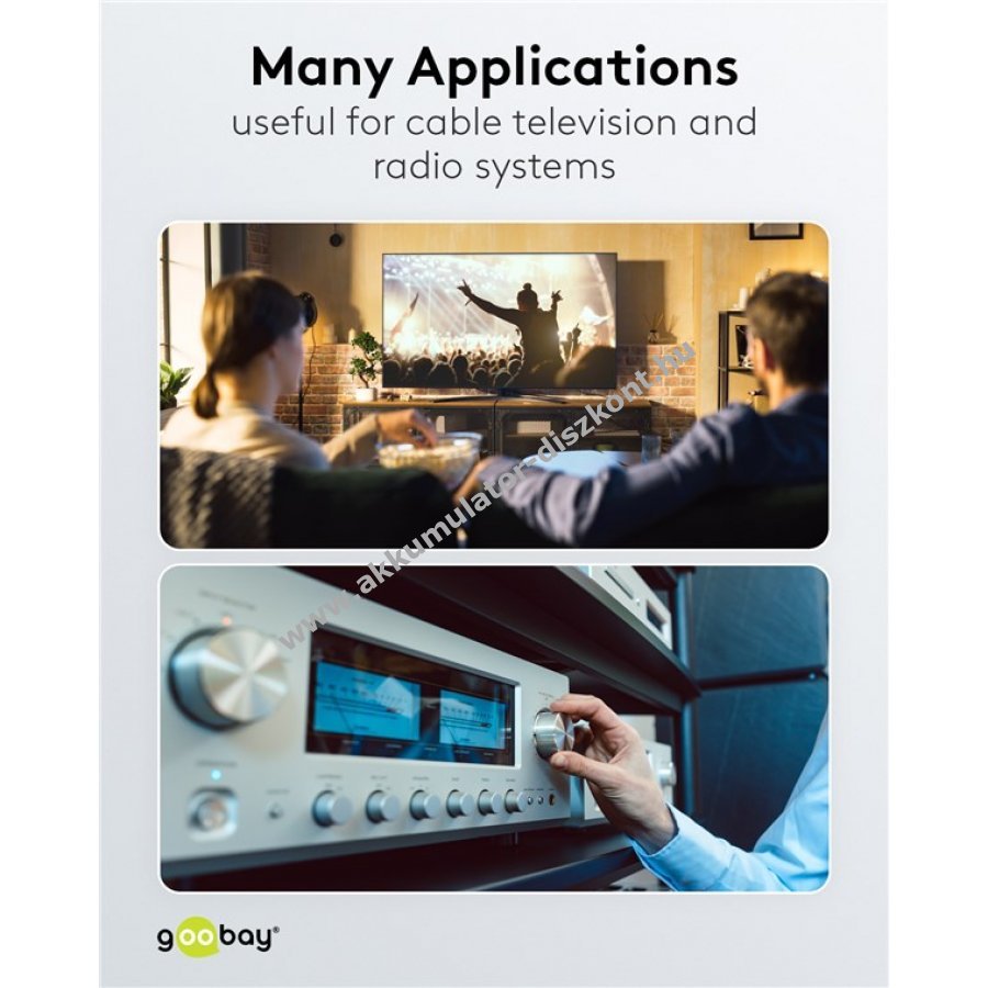 - Használat: csatlakoztatás vagy meghosszabbítás kábeltelevízióhoz és rádióberendezésekhez
