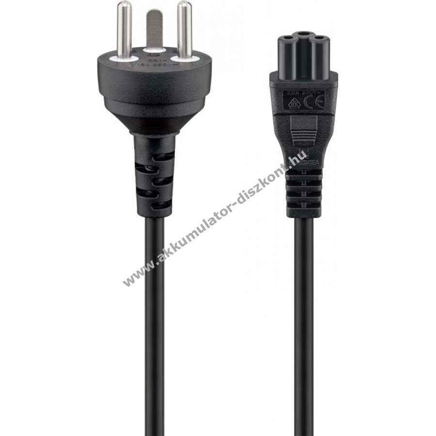 Hálózati kábel Dánia típusú dugóval (K típus, DS 60884-2-D1) és IEC-60320-C5 csatlakozóval. Alkalmas monitor, szkenner, projektor, nyomtató, hangszóró és egyéb eszközök csatlakoztatására. Ideális használt hálózati kábel cseréjéhez.