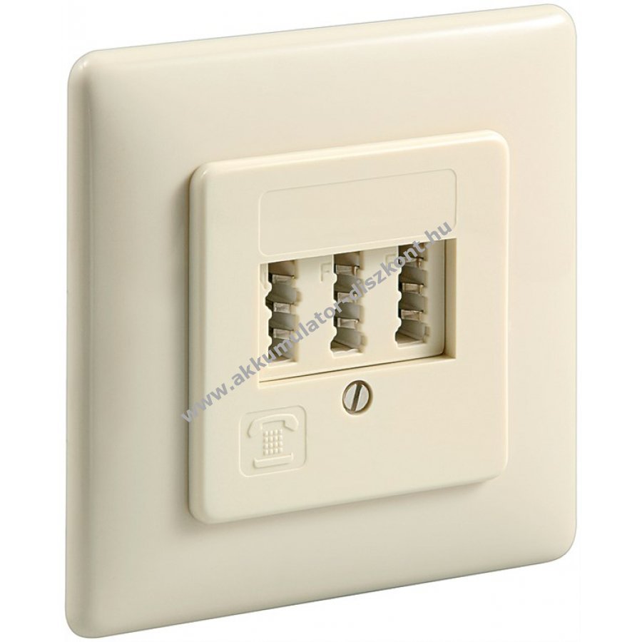 Tartós műanyag házban készült telefonaljzat három csatlakozóval a kényelmes készülékcsatlakoztatáshoz.