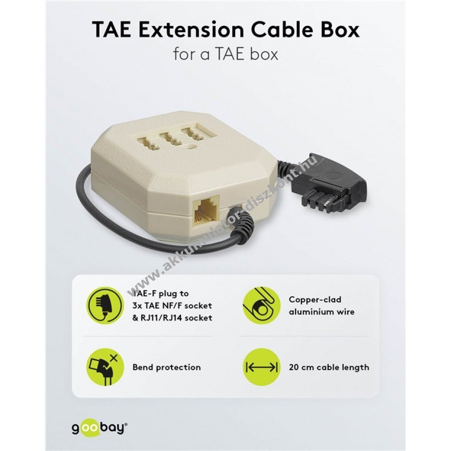 Goobay TAE-F-NFF hosszabbító doboz 0,2m TAE-F csatlakozó 3x TAE N/F/F aljzat RJ11 RJ14 aljzattal