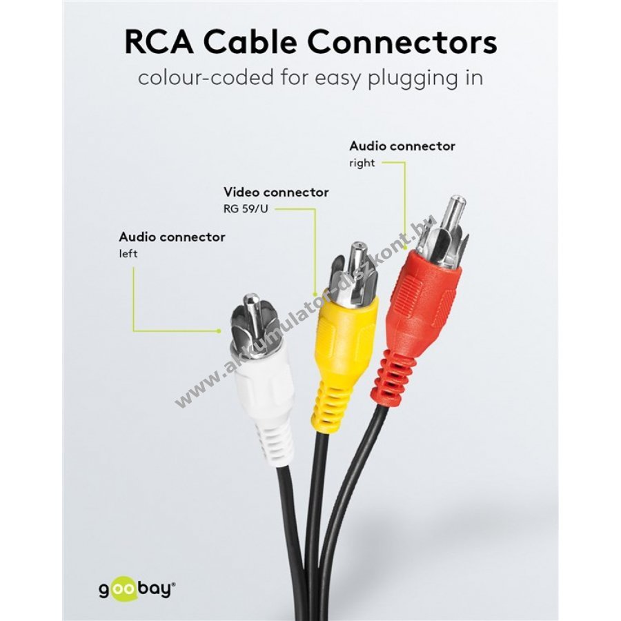 Színkódolt RCA csatlakozók piros fehér sárga a könnyű csatlakoztatásért