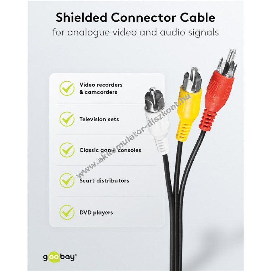 Ezek a Cinch (RCA) Összekötő kábelek kiváló választást jelentenek| legyen szó kerti tartozékokról| elemtartókról| fejhallgató kiegészítőkről| vagy autós és számítógép-tartozékokról. A termékek minőségi anyagokból készülnek| és megbízható technológiával biztosítják a hosszú élettartamot. Akár a kábelrendezés| akár a tisztítóanyagok vagy a szerszámkészletek érdeklik| garantáltan megtalálja a megfelelő kiegészítőt| miközben az akciók révén spórolhat is.