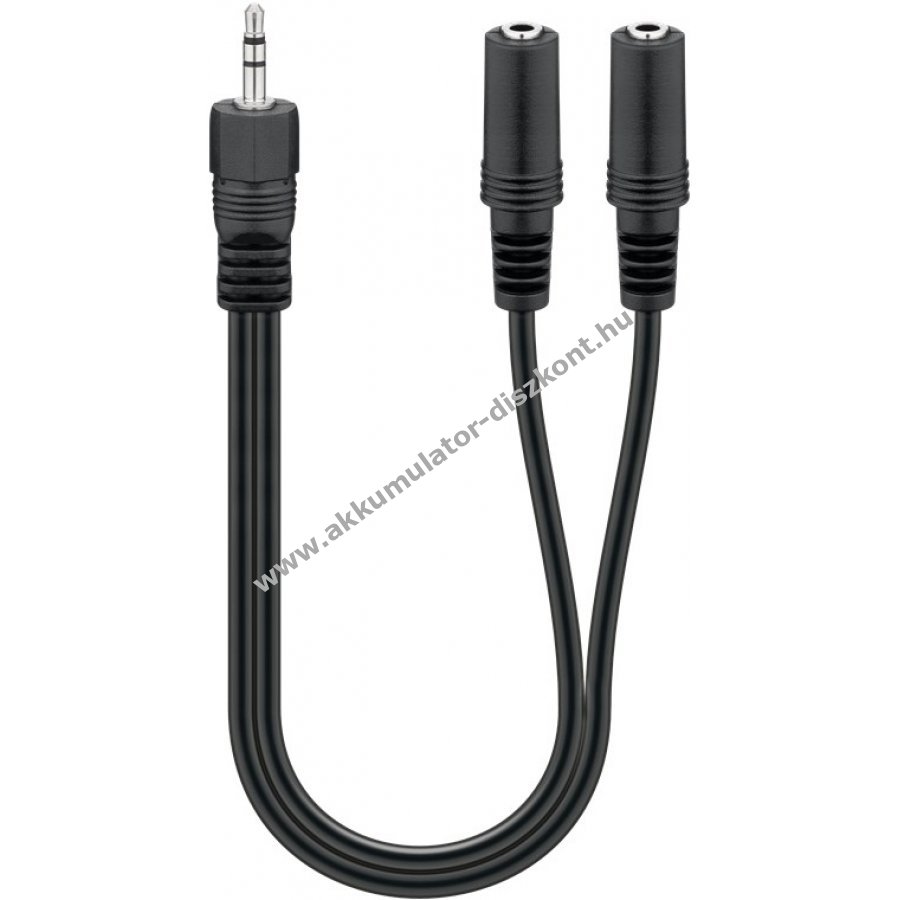 Az adapter elosztja egy eszköz audiojelét két külön kimenetre, így két fejhallgató vagy hangszóró csatlakoztatható egyszerre.