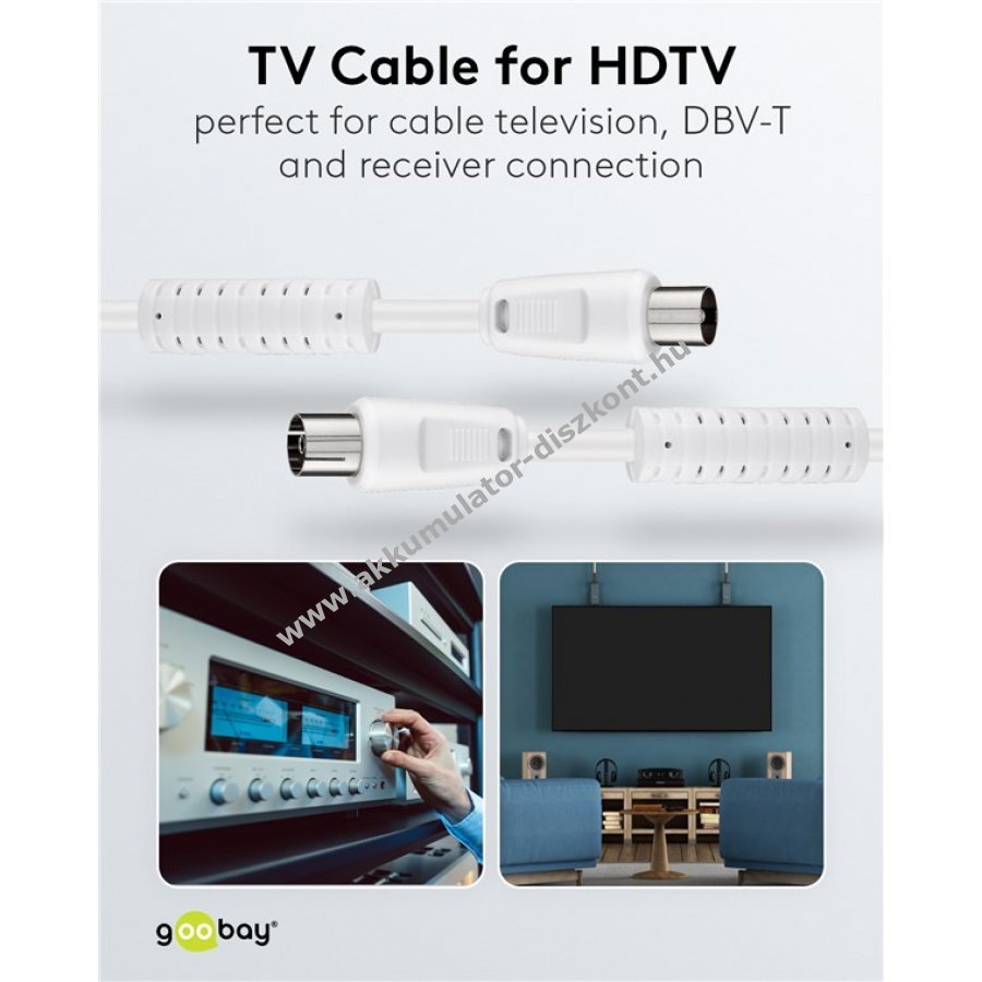 Dupla árnyékolású antennakábel ferritmaggal a zavartalan jelátvitelért.