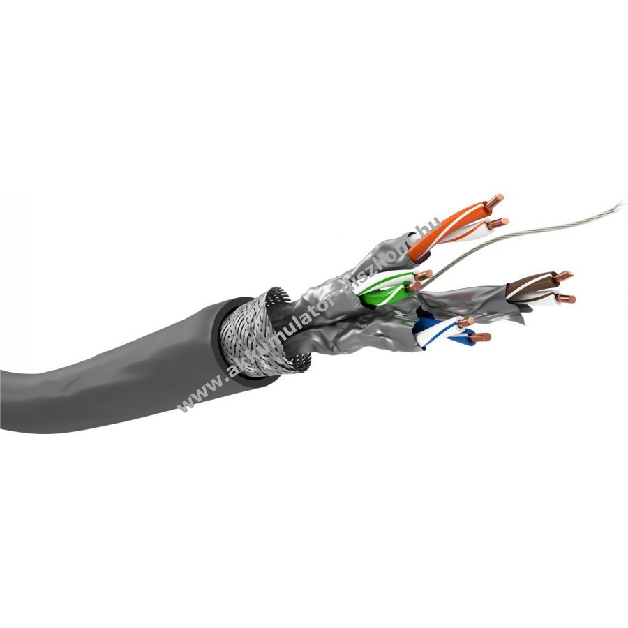 S/FTP árnyékolás egyedi alumínium fólia árnyékolással és külső alumínium fonott árnyékolással.