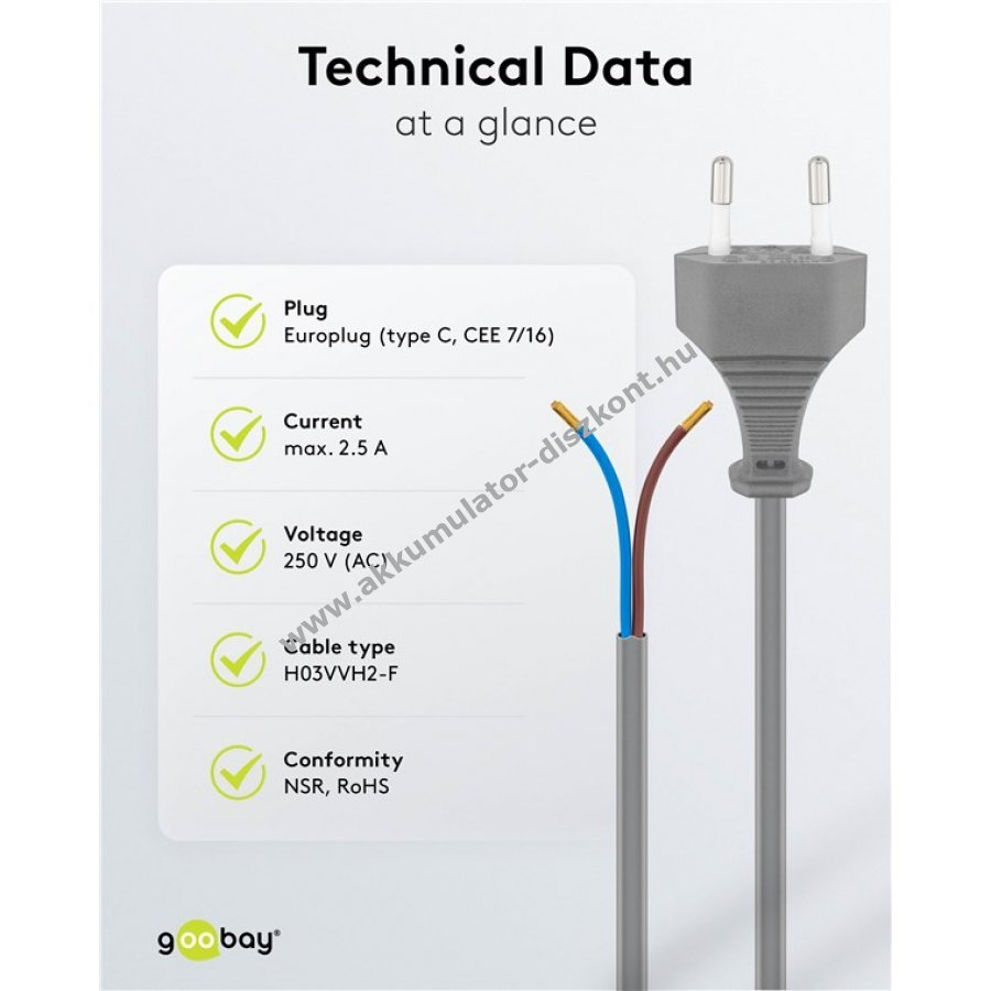 Elektromos készülékek csatlakoztatására alkalmas kábel Eurodugóval