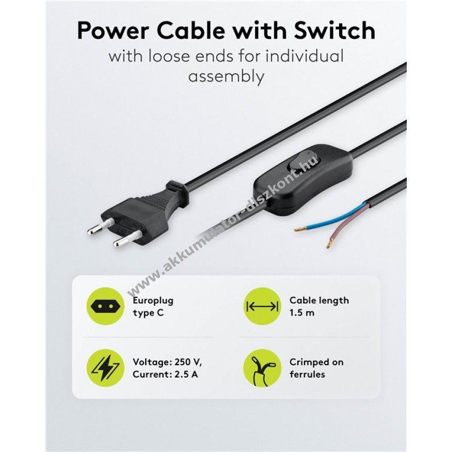Az kábel középső kapcsolóval rendelkezik be- és kikapcsoláshoz