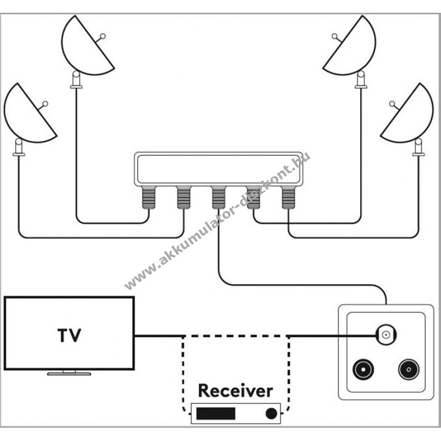 Négy LNB közötti kapcsolásra alkalmas 900 MHz és 2400 MHz közötti frekvenciatartományban 3 dB áthaladási csillapítással. Falra és oszlopra szerelhető. Használható DiSEqC-kompatibilis műholdvevővel vagy televízióval. Egyszerűen csatlakoztatható koaxiális kábellel és F-csatlakozóval.