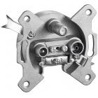 Fehér, 3 lyukú antennacsatlakozó fedlap feliratozással TV, SAT és rádió számára. Tartozék montázs csavarral, univerzális takaró átmenő- és végdobozokhoz.