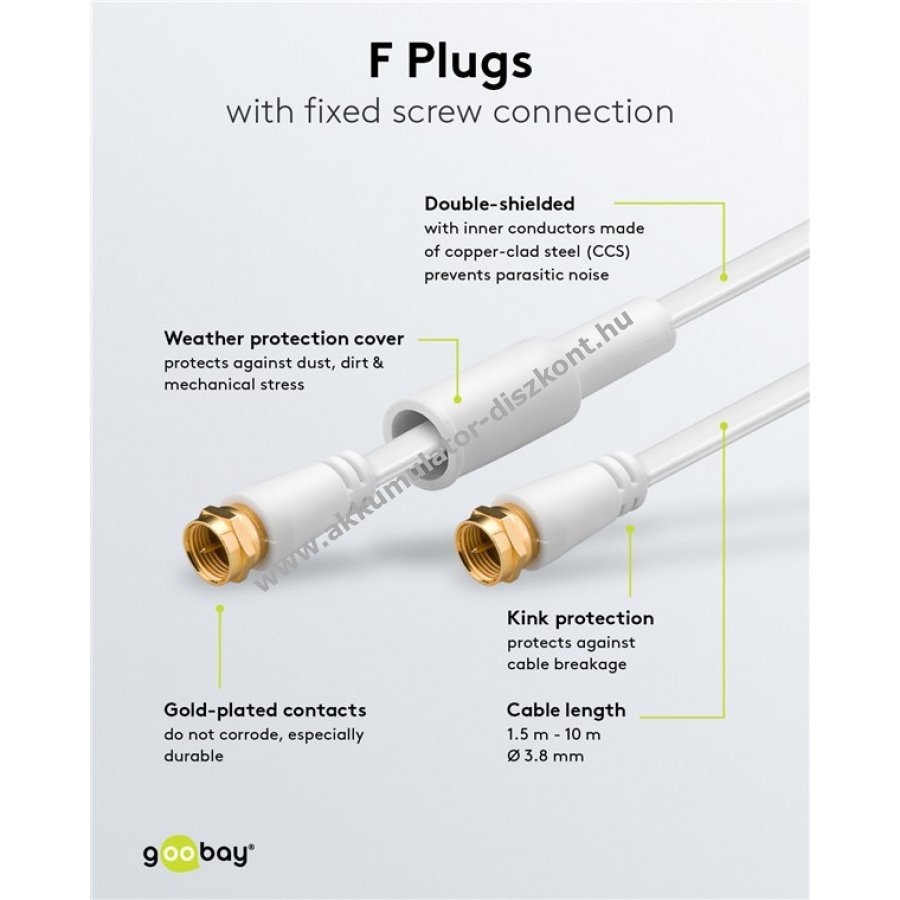 Goobay lapos SAT antennakábel 1,5m aranyozott F-csatlakozóval