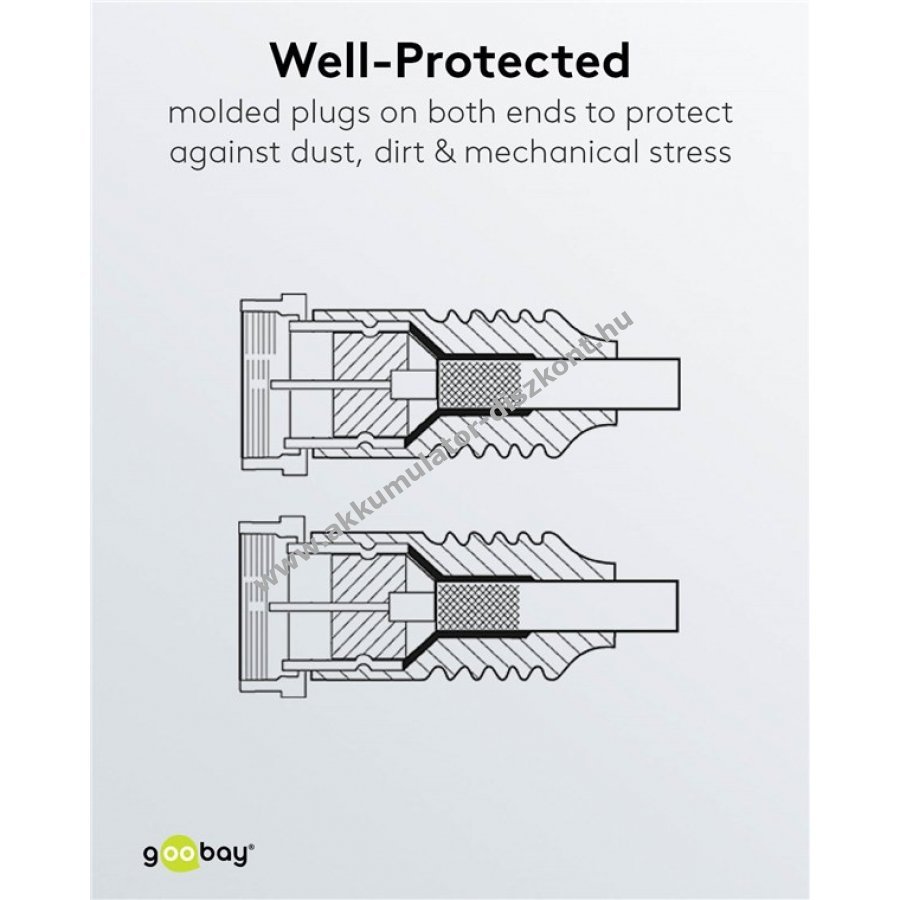 Mindkét oldalon zárt aranyozott csatlakozó a por és szennyeződés elleni védelemért