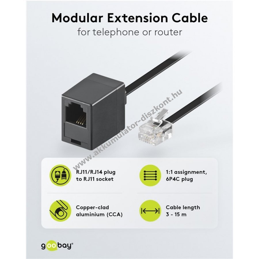 Goobay telefon hosszabbító kábel 6m RJ11/RJ14 csatlakozó