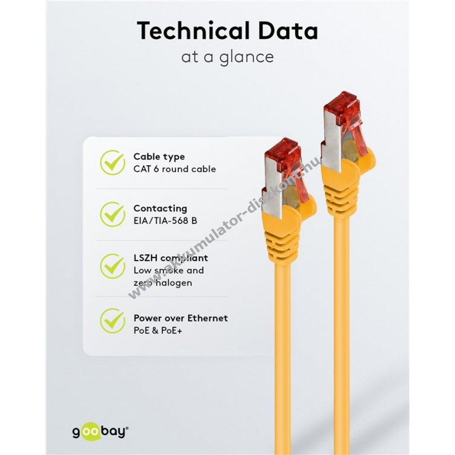 A Goobay CAT 6 patchkábel kiváló jelátvitelt és stabil kapcsolatot biztosít nagy sebességnél. Kiváló minőségű rézvezetőkkel és aranyozott érintkezőkkel rendelkezik a megbízható hálózati kapcsolat érdekében.