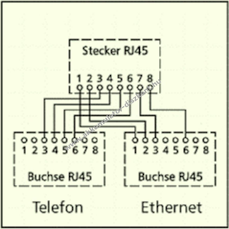 Kábelmegosztó adapter két 4-eres szolgáltatás egyidejű használatához egy 8-eres vezeték segítségével. Használható Ethernet és ISDN telefon egy kábelvezetékén.