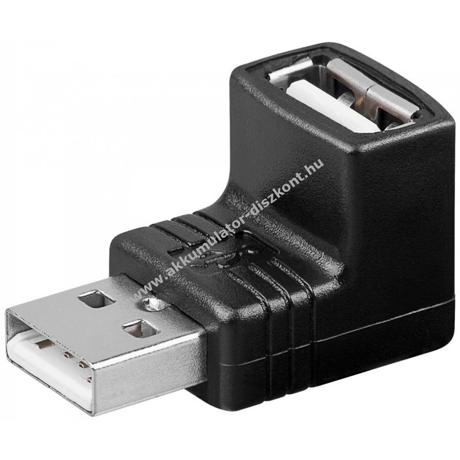 USB 2.0 Hi-Speed adapter porvédő tasakkal USB 2.0 A-típusú csatlakozó (aljzat) 90 fokos elfordítással USB 2.0 A-típusú dugóhoz