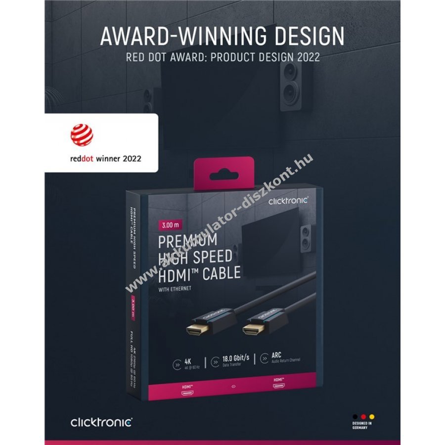 A Clicktronic HDMI kábel tartósságra és stabilitásra készült 10 év garanciával. A háromrészes PVC és ABS csatlakozó szerkezet védi a kábelt a töréstől. A 24 karátos aranyozott csatlakozók és tiszta réz vezetők garantálják a kiváló hang- és képminőséget. Tökéletes otthoni mozihoz és játékhoz.