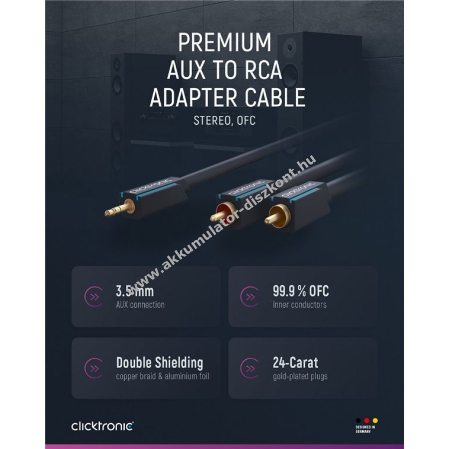 A kiváló minőségű aranyozott fém érintkezők és a 99 9% oxigénmentes réz vezetékek tiszta sztereó hangátvitelt biztosítanak