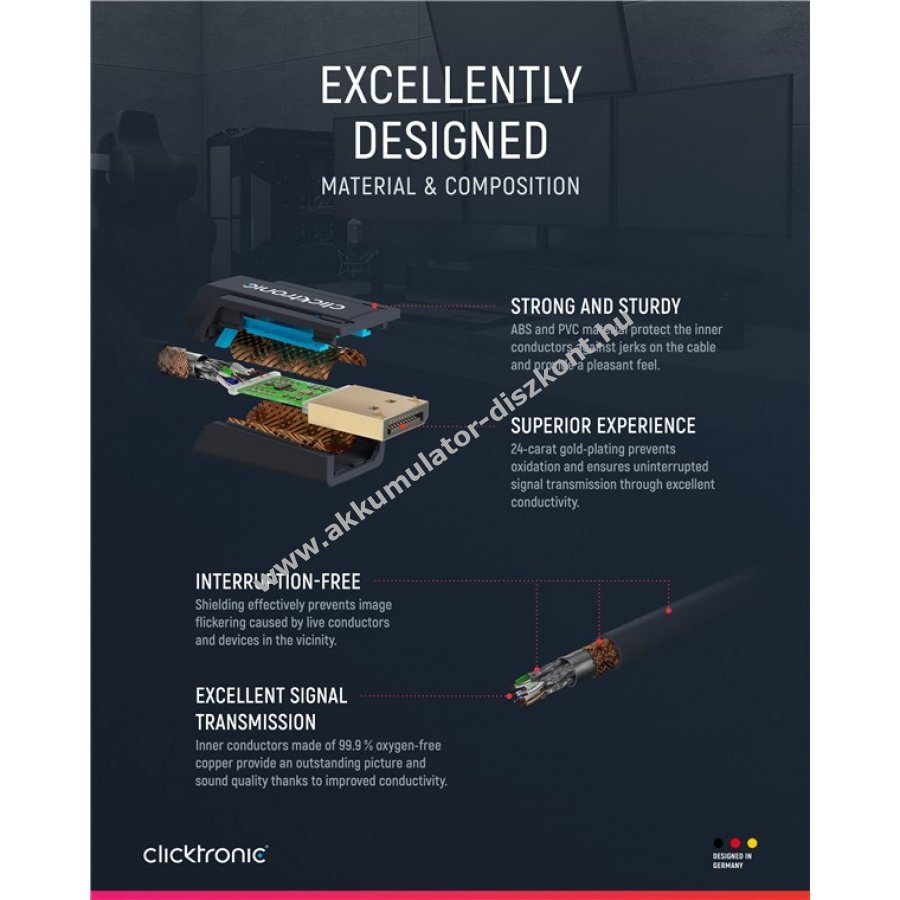 Clicktronic kábel tartós és stabil kivitelű 10 év garanciával.
