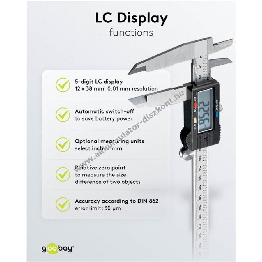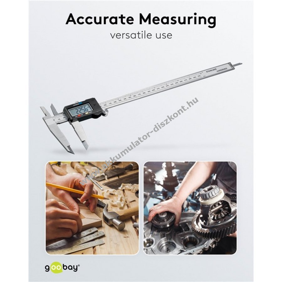 A digitális tolómérő pontos mérésre alkalmas otthoni és ipari használatra. A nagy LCD kijelző segíti az eredmények könnyű leolvasását és csökkenti a hibaleolvasás kockázatát.