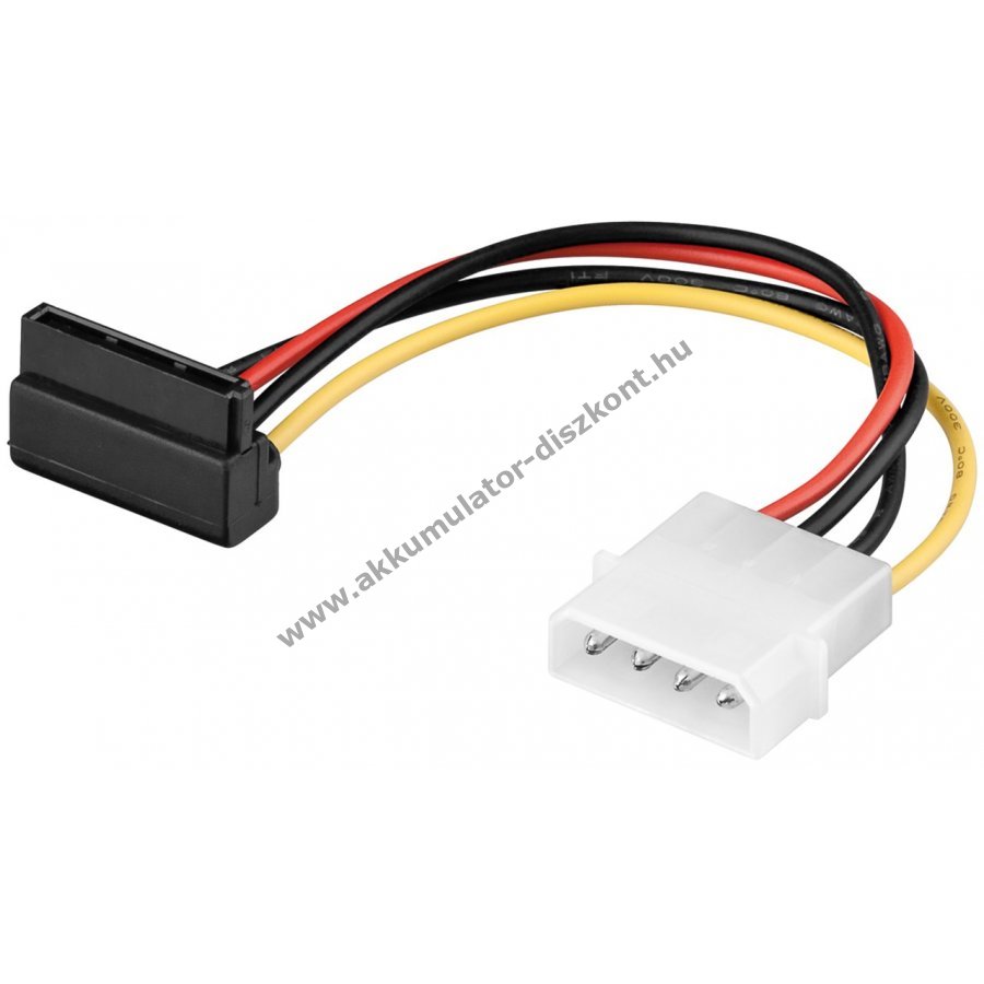 Tápkábel merevlemezhez HDD SSD DVD Blu-ray eszközökhöz 5,25" csatlakozóról SATA 90° csatlakozóig biztosít áramellátást
